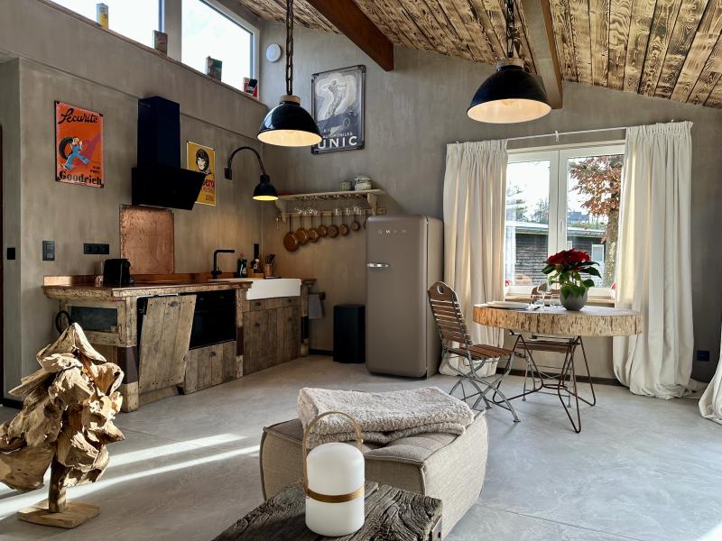 Begane grond: open keuken met eettafel, kookplaat, afzuigkap, koffiezetapparaat(nespresso cups), oven, afwasmachine, koelkast(+ vriesvak) , woon/eetkamer met open haard, zithoek, dart , slaapkamer met 2-pers. bed(2 persoons dekbed), ligbad , badkamer met douche(inloopdouche, Regen), wastafel , relaxruimte, terras met spa bad(privé, buiten) tuin(privé, omheind)