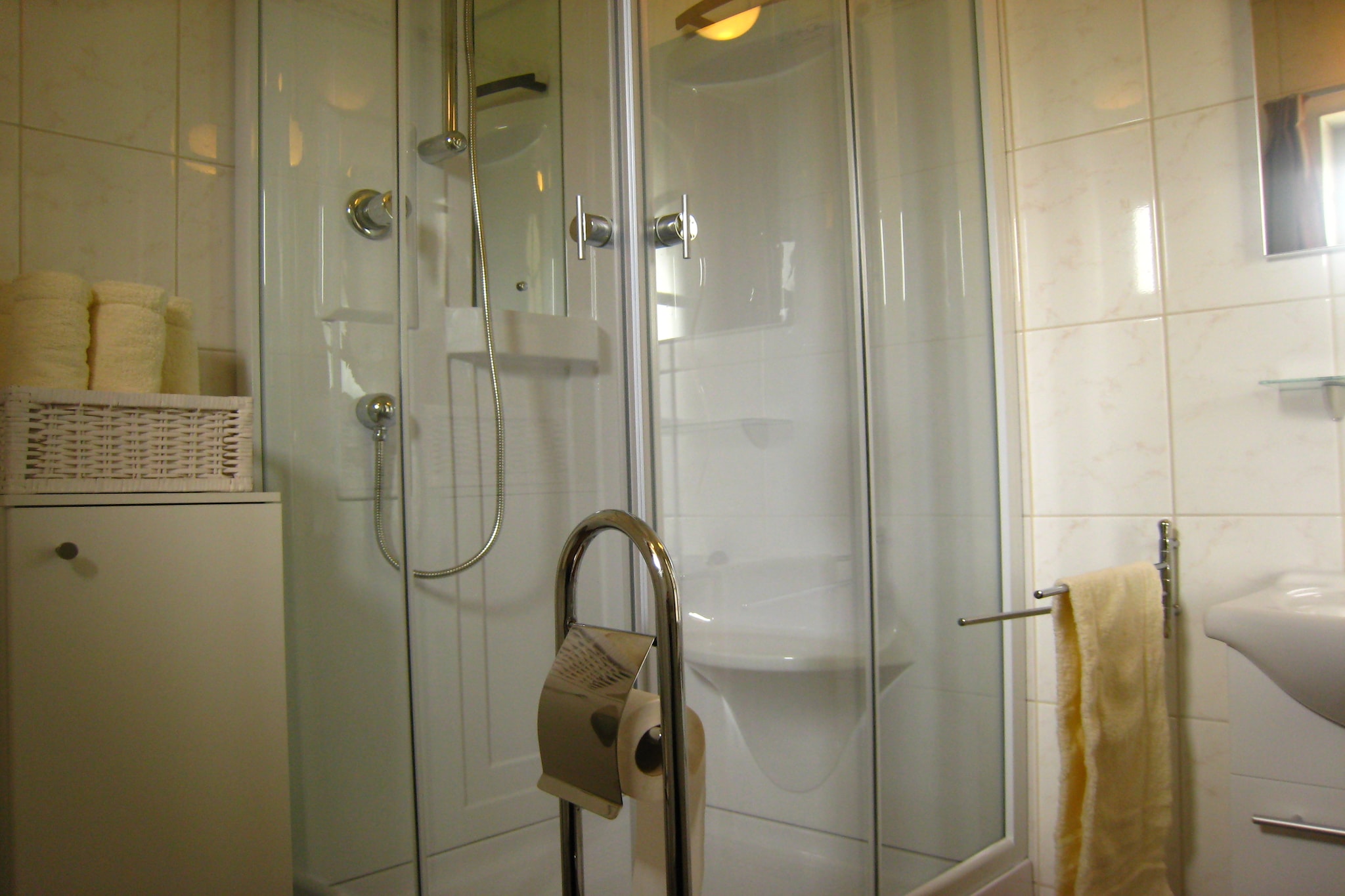 de badkamer is wat klein maar alles was schoon en gezellig ingericht