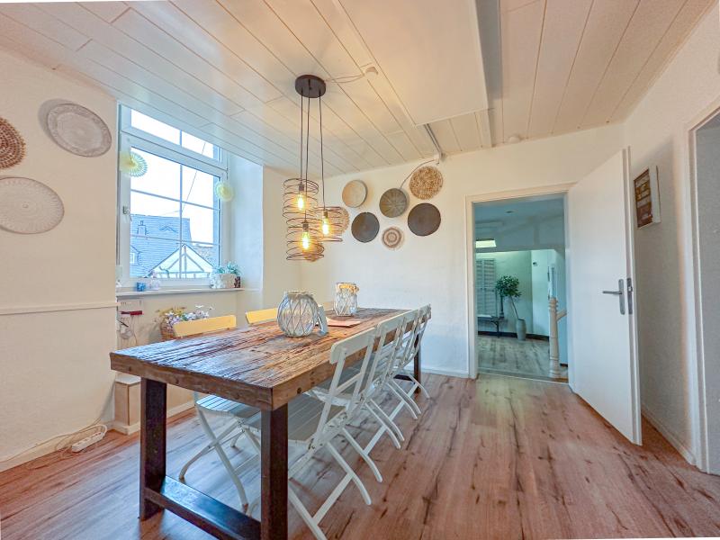 Het historische stadje Münstermaifeld, op slechts 5 km van de Moezel, biedt vakwerkhuizen, een fraaie kerk, winkels, goede restaurants en dit vakantiehuis. Het karaktervolle huis uit 1309 is volledig gemoderniseerd en compleet, met luxe badkamers, een ruime woonkamer, goed uitgeruste keuken en fijne slaapkamers. De moderne inrichting is smaakvol en huiselijk. Buiten is er een lange tafel met grill en een patio met lounchehoek. Het centrum ligt op loopafstand en je parkeert gratis voor de deur