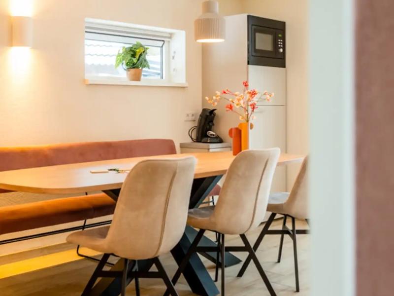 Het Groene Dak is een vrijstaande, volledig elektrische villa voor zes personen waar duurzaamheid en gezelligheid hand in hand gaan. Drie slaapkamers, een ruime woonkamer en een overdekt terras zorgen voor alle ruimte die een groot gezelschap nodig heeft. Buiten zingt het bos, binnen heerst het comfort. En omdat alles elektrisch is, geniet je hier met een gerust hart van alles wat de natuur je geeft De natuur rond Heesch is op haar mooist als je haar in alle rust in je opneemt. Pak de fiets en rijd richting de Lithse Ham, een prachtig uiterwaardengebied langs de Maas waar je kunt genieten van weidse vergezichten, rustieke picknickplekken en een indrukwekkende vogelpopulatie. In het voorjaar staat alles in bloei en de stilte wordt alleen verbroken door het ruisen van het water. Wil je als groep een dag vol avontuur? Het Wijchen Recreatiegebied met zijn strand en watersportmogelijkheden is een perfecte dagbestemming voor zes mensen met verschillende smaken. En voor een ontspannen avond samen is er altijd Oss, met zijn gezellige horeca, culturele evenementen en de sfeervolle Eikenboomgaard. Noord-Brabant biedt een groep altijd genoeg om over te praten aan tafel