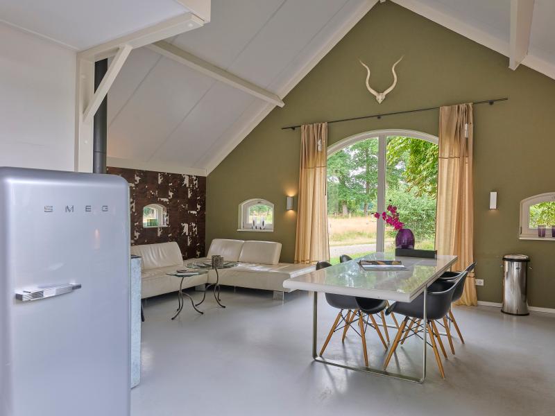 Begane grond: woonkamer met TV(flatscreen, digital, Nederlandse zender(s), Duitse zender(s), internationale zender(s)), eettafel(4 personen), kachel(hout), zithoek , open keuken met kookplaat(4 kookplaten, inductie), waterkoker, afzuigkap, koffiezetapparaat(filtermaling), oven(elektrisch), afwasmachine, koelkast(+ vriesvak), Staafmixer , slaapkamer met 2-pers. bed(boxspring, 160 x 200 cm) , badkamer met ligbad, douche(inloopdouche), wastafel, wc , wasdroger, wasmachine