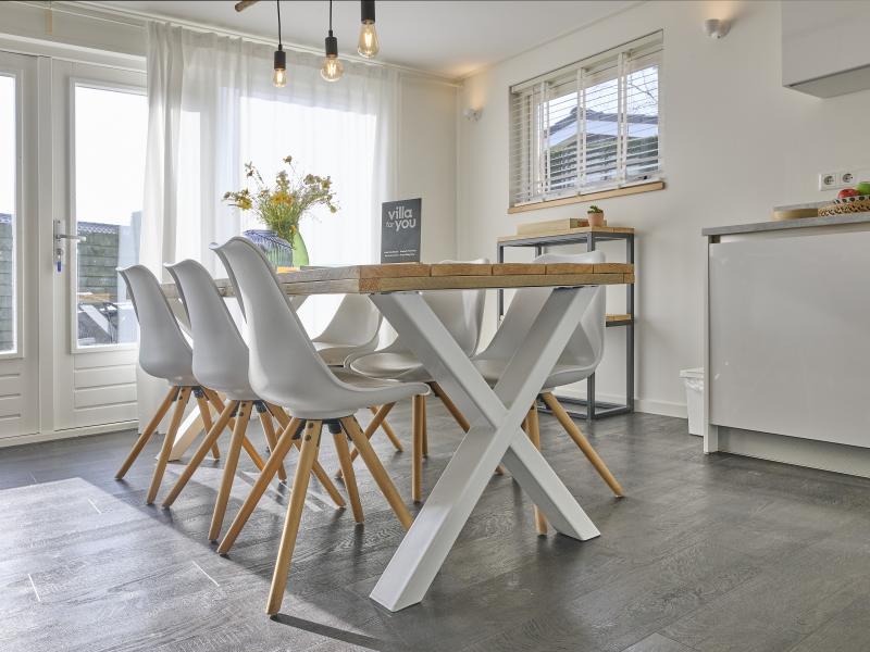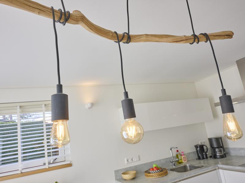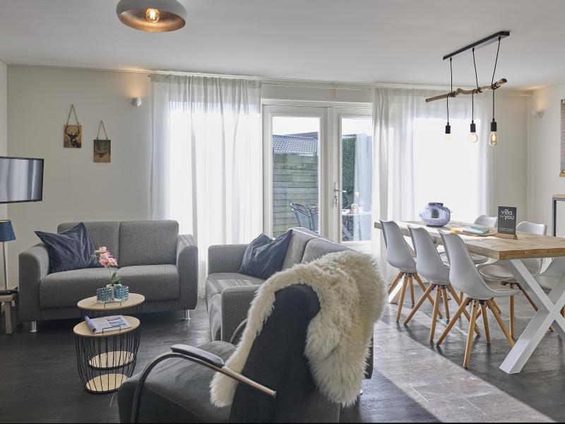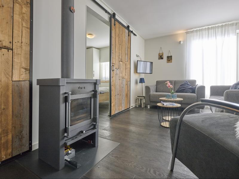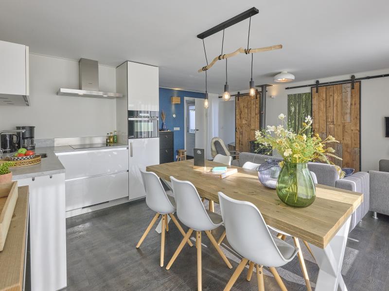 Begane grond: open keuken met kookplaat(4 kookplaten), waterkoker, afzuigkap, koffiezetapparaat(filtermaling), oven, magnetron, afwasmachine, koelkast , woon/eetkamer met TV(flatscreen, Nederlandse zender(s), Duitse zender(s)), eettafel, kachel(hout), zithoek, radio , slaapkamer met 2-pers. bed(2 x 1 persoons dekbed) , slaapkamer met 2x 1-pers. bed , slaapkamer met stapelbed , badkamer met douche(inloopdouche), wastafel, haardroger , toilet met wc