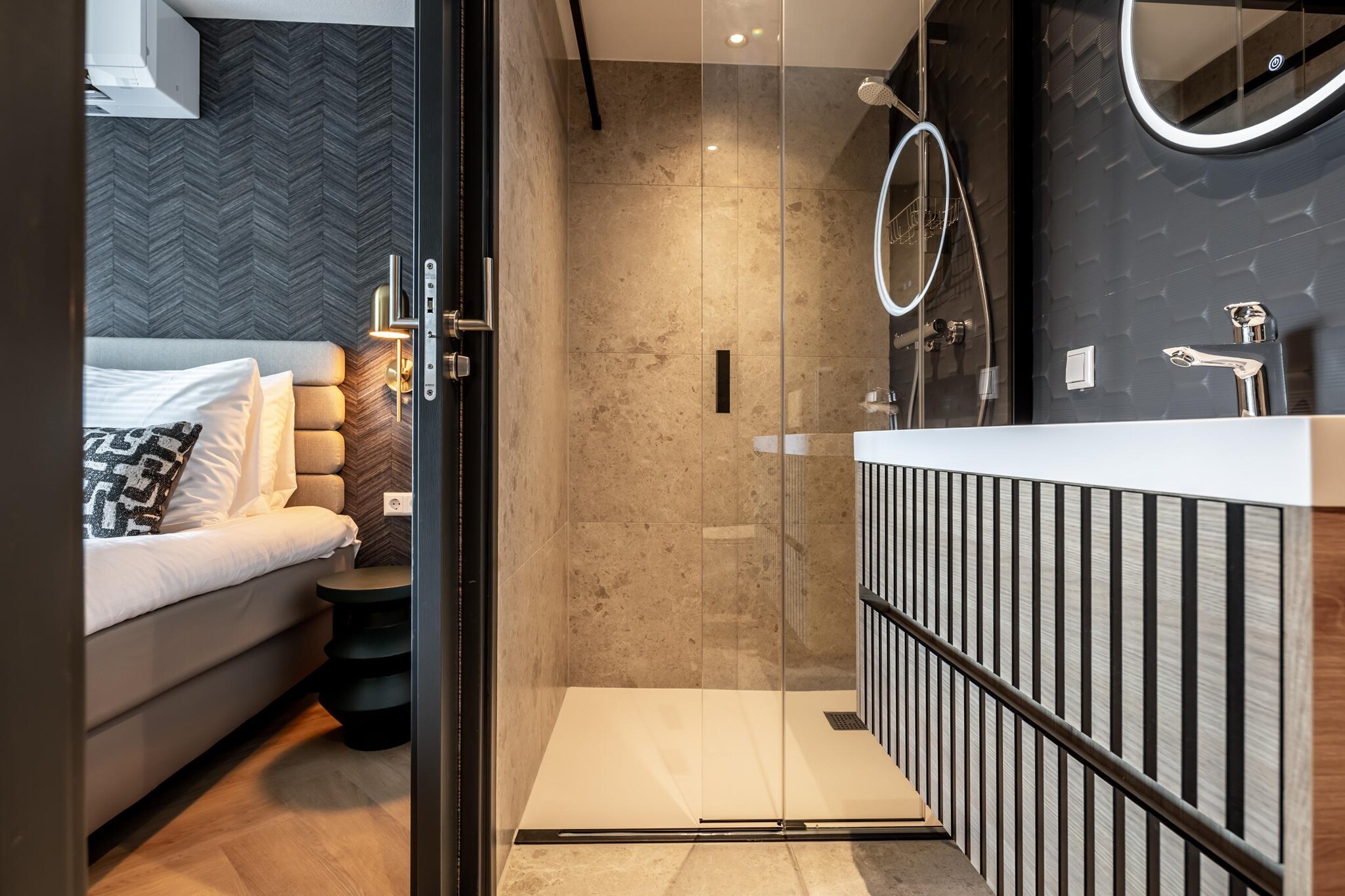 Hansen - aankomst: 28/4/2025 Het bed was ongelooflijk comfortabel en ik heb fantastisch geslapen. De eigen badkamer was stijlvol en praktisch.